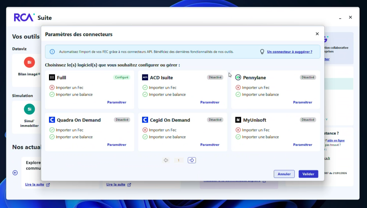 - Si un partenaire propose plusieurs logiciels, une liste déroulante permet de sélectionner celui utilisé par le cabinet.
