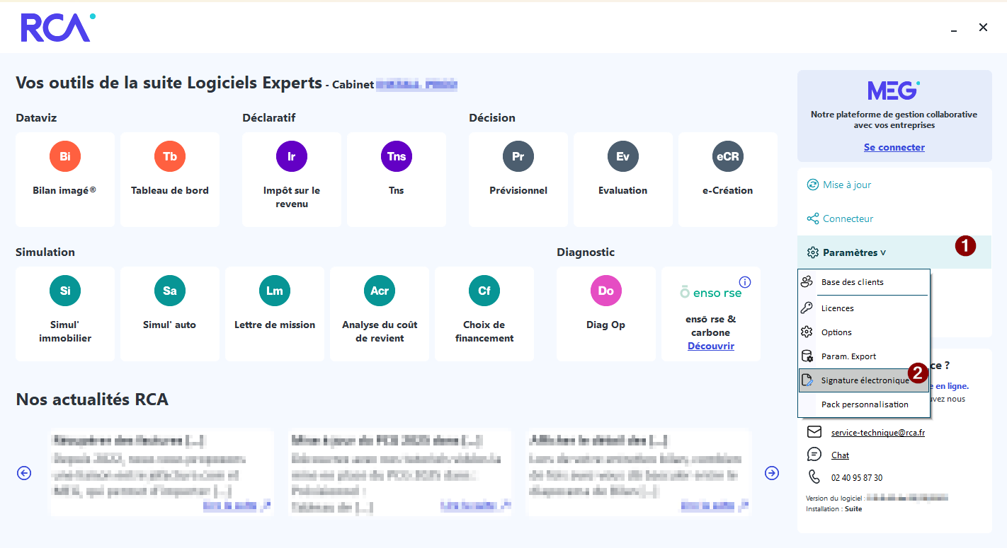 2. Dans les informations du cabinet, les informations concernant l’expert-comptable signataire (nom, prénom, téléphone, mail). Vous retrouvez les informations lors de la sélection du signataire dans la partie SIGNATURE de l’onglet ÉTUDE.