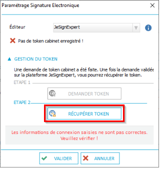 Une fois le token généré, passez à l’étape 2 et récupérez le token généré en cliquant sur le bouton « Récupérer Token ».