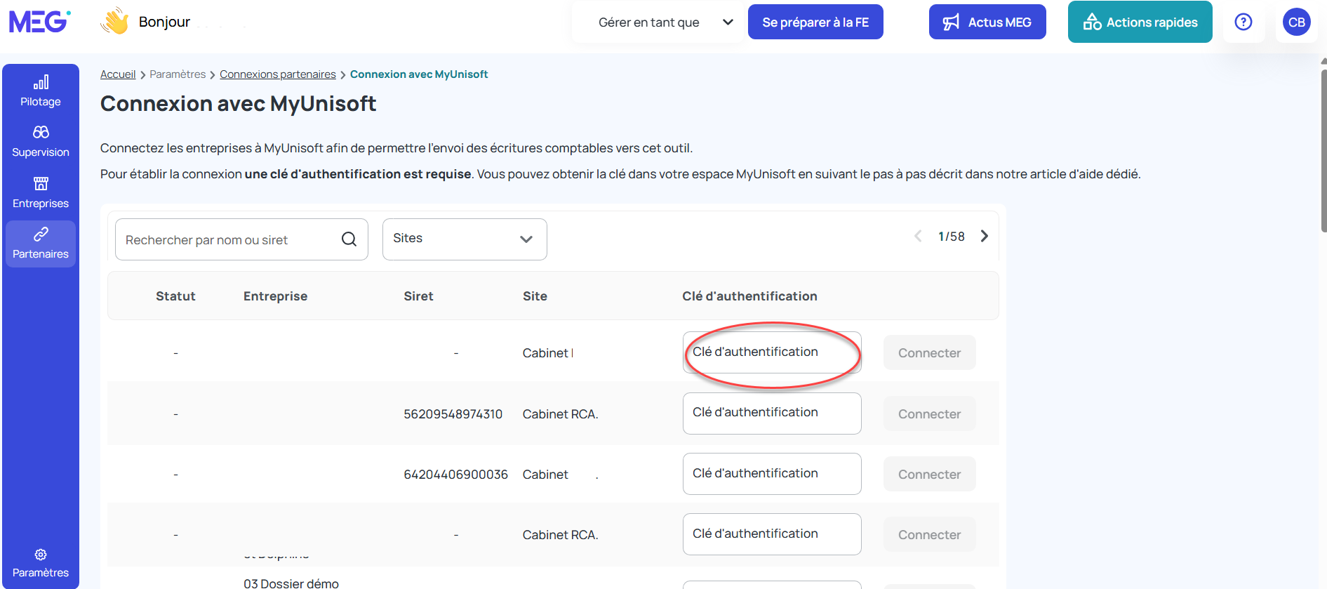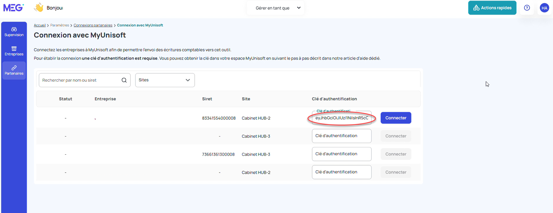 2. Récupérer la clé d'authentification sur MyUnisoft