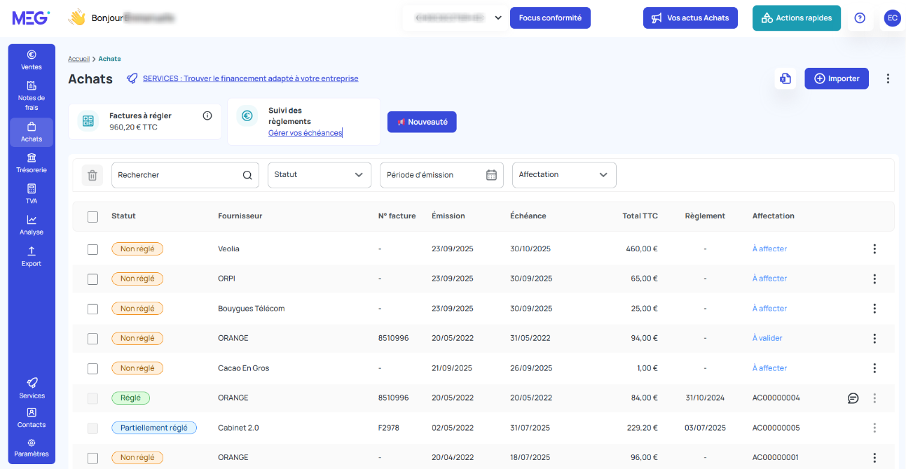 - Le remplissage automatique des données dès l'import de la facture : plus besoin de remplir le formulaire, MEG s'en occupe !