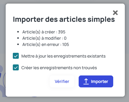 Si des articles sont en erreur, une fenêtre s'ouvre et affiche le nombre d'articles en erreur :