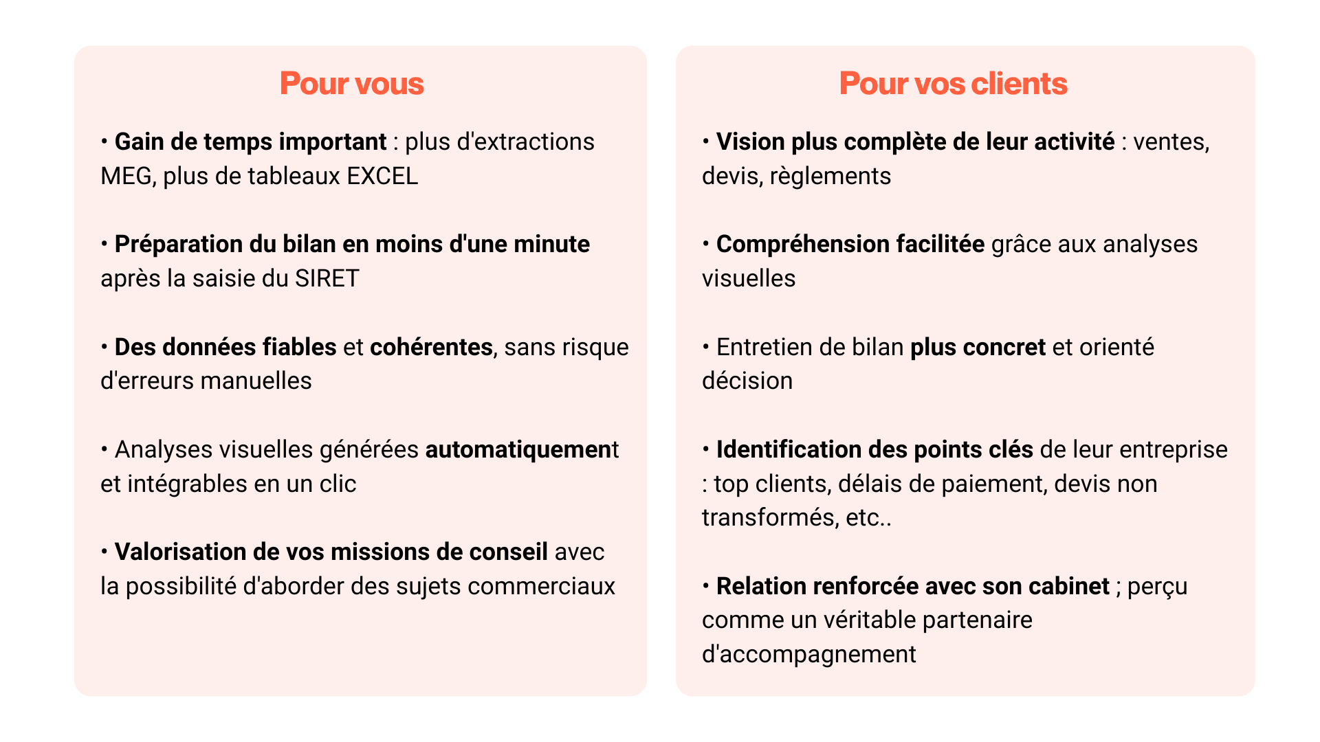 Ils permettent d'intégrer automatiquement les données de vente MEG (facturation, devis, règlements) dans la restitution imagée du bilan, sans extraction manuelle ni manipulation Excel.